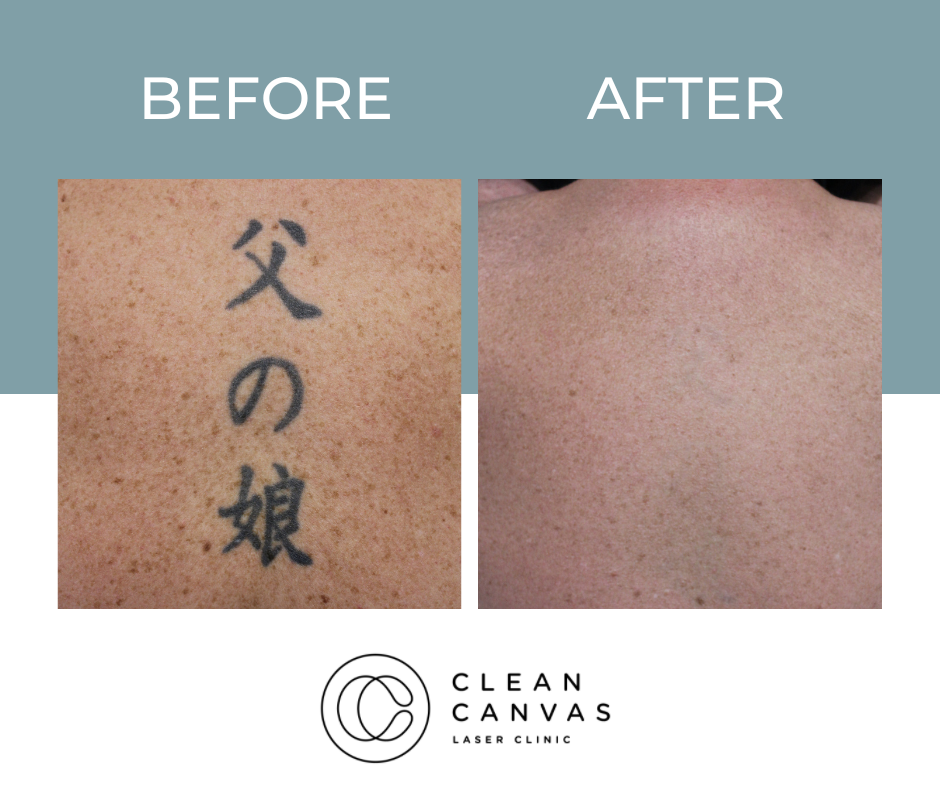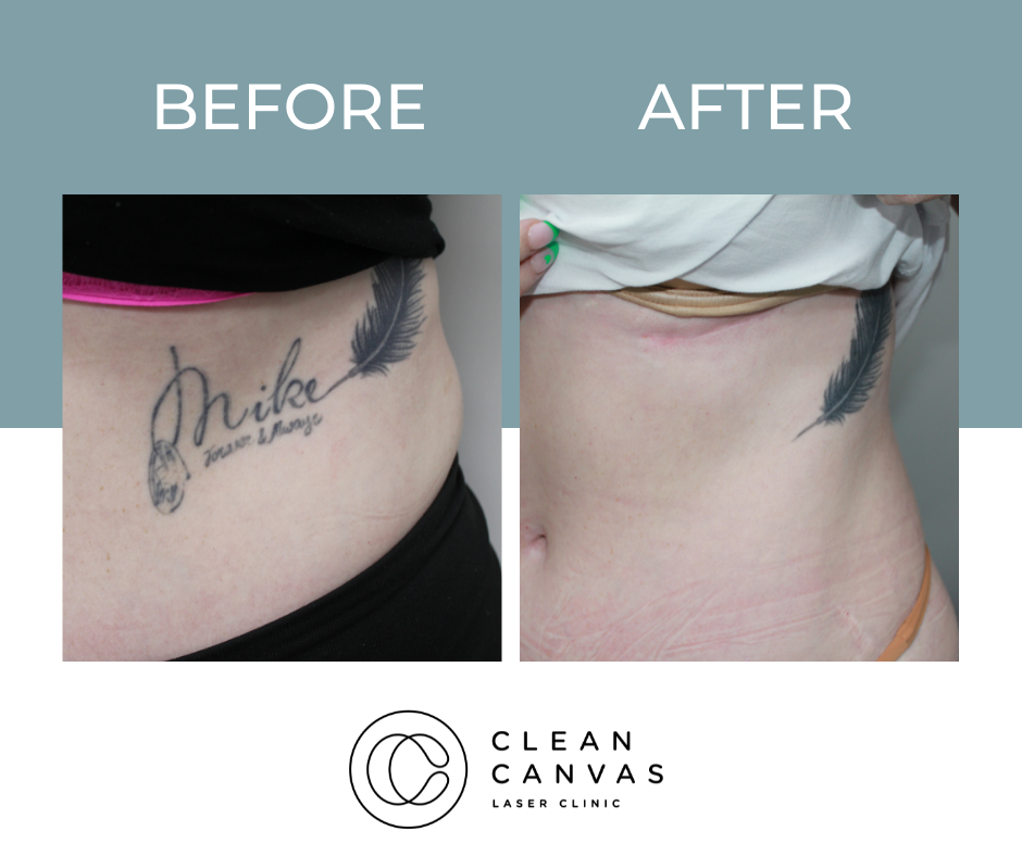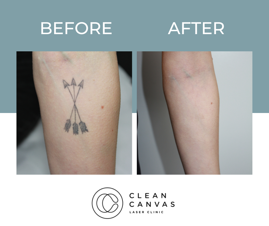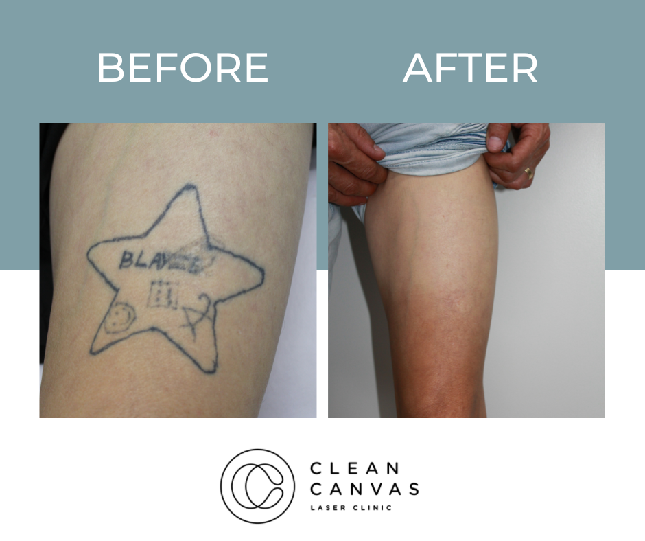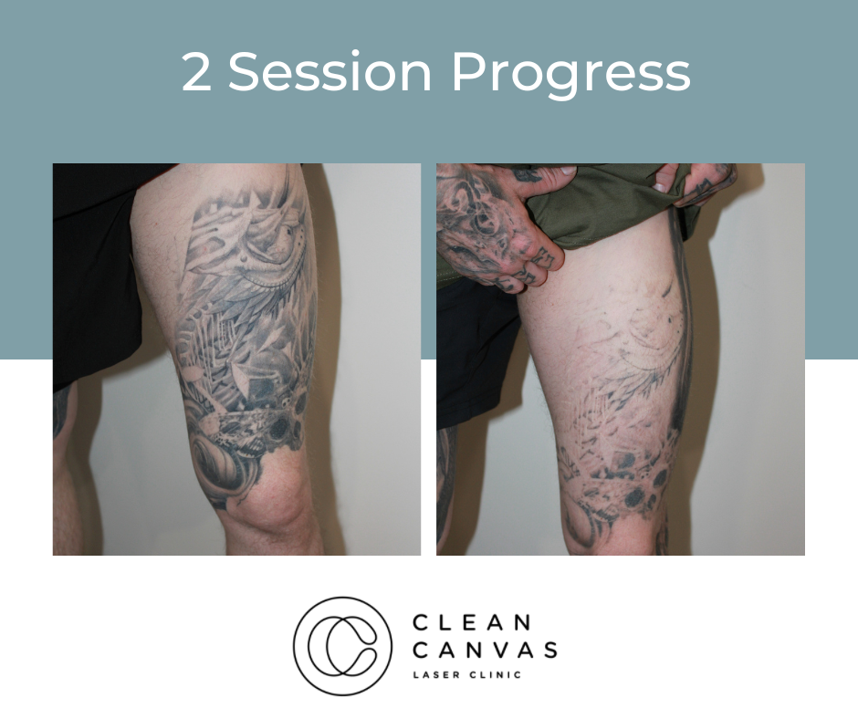 At Clean Canvas Laser Clinic, we’re dedicated to providing the best treatments and care to our clients and that includes getting fantastic results. The before and after results you see below have all been taken at our clinic and show various stages of the tattoo removal process. Your treatment throughout the tattoo removal process may vary as we tailor each session for every client based on their tattoo needs. We often come across clients that have pre-existing scarring and often incorporate skin rejuvenation at no extra cost! Understanding skin is vital for consistently successful tattoo removal and that’s what we are all about.