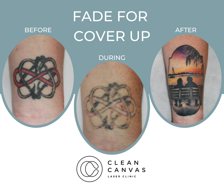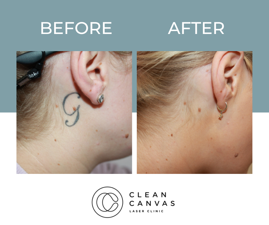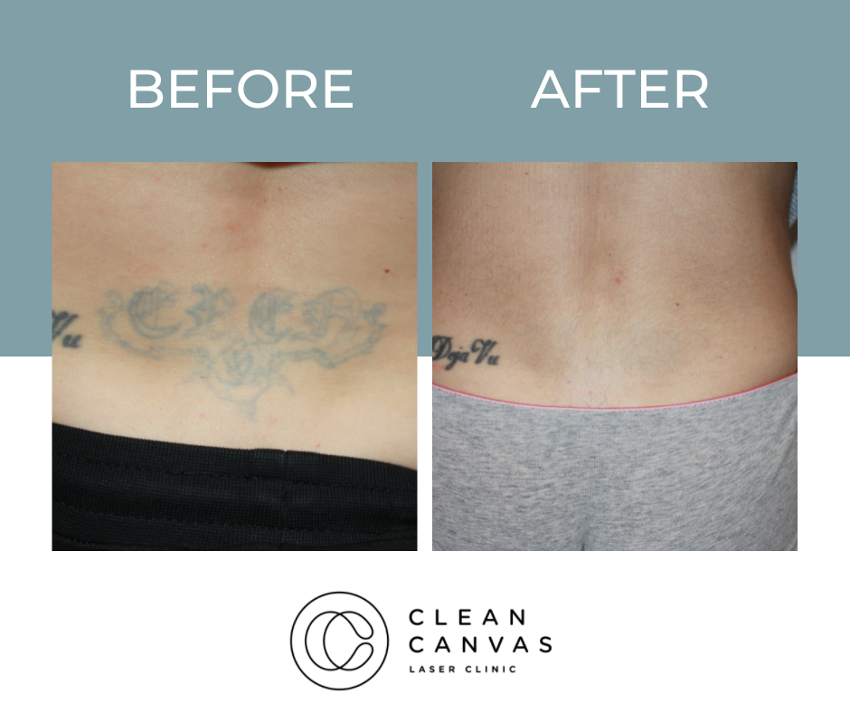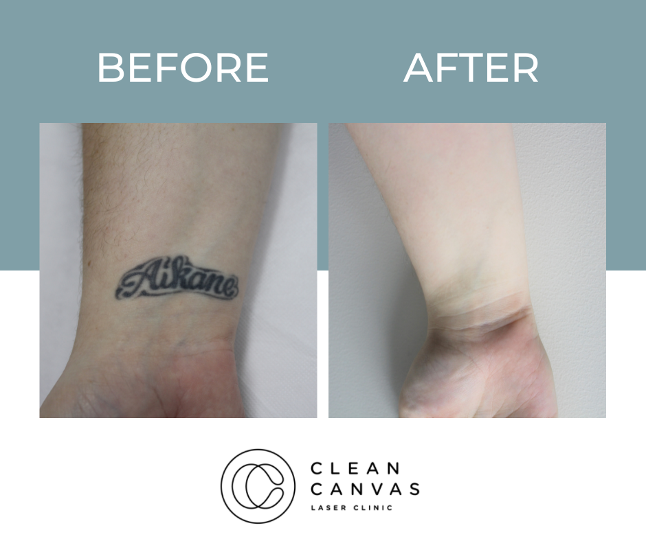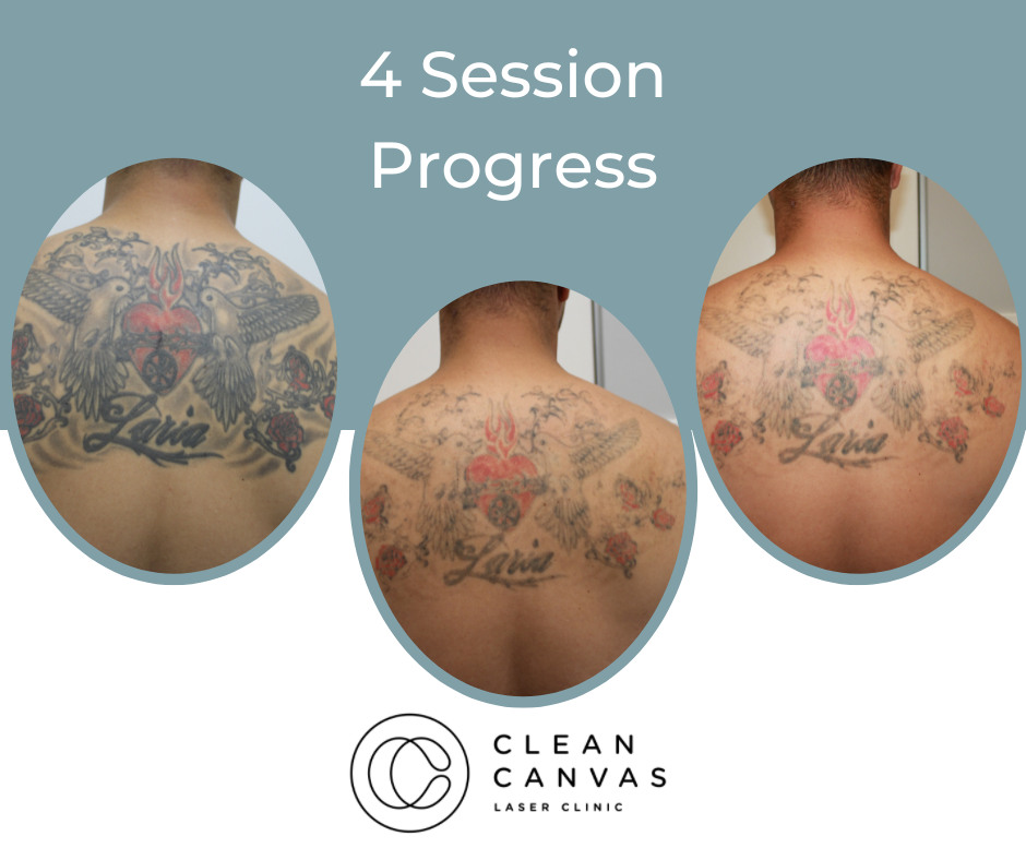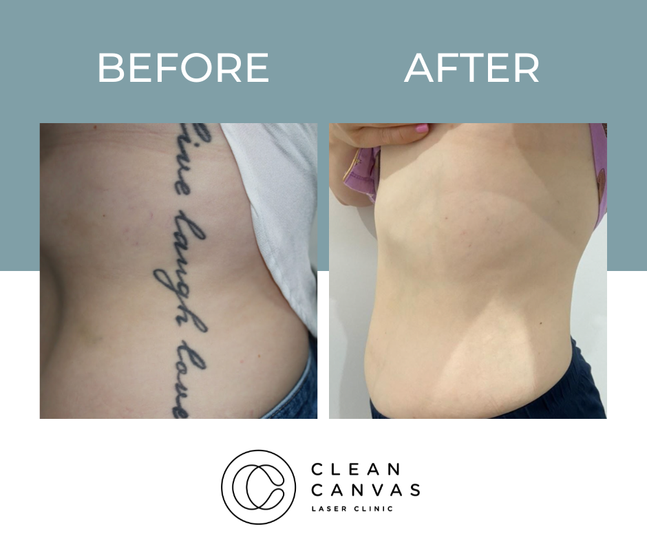 At Clean Canvas Laser Clinic, we’re dedicated to providing the best treatments and care to our clients and that includes getting fantastic results. The before and after results you see below have all been taken at our clinic and show various stages of the tattoo removal process. Your treatment throughout the tattoo removal process may vary as we tailor each session for every client based on their tattoo needs. We often come across clients that have pre-existing scarring and often incorporate skin rejuvenation at no extra cost! Understanding skin is vital for consistently successful tattoo removal and that’s what we are all about.